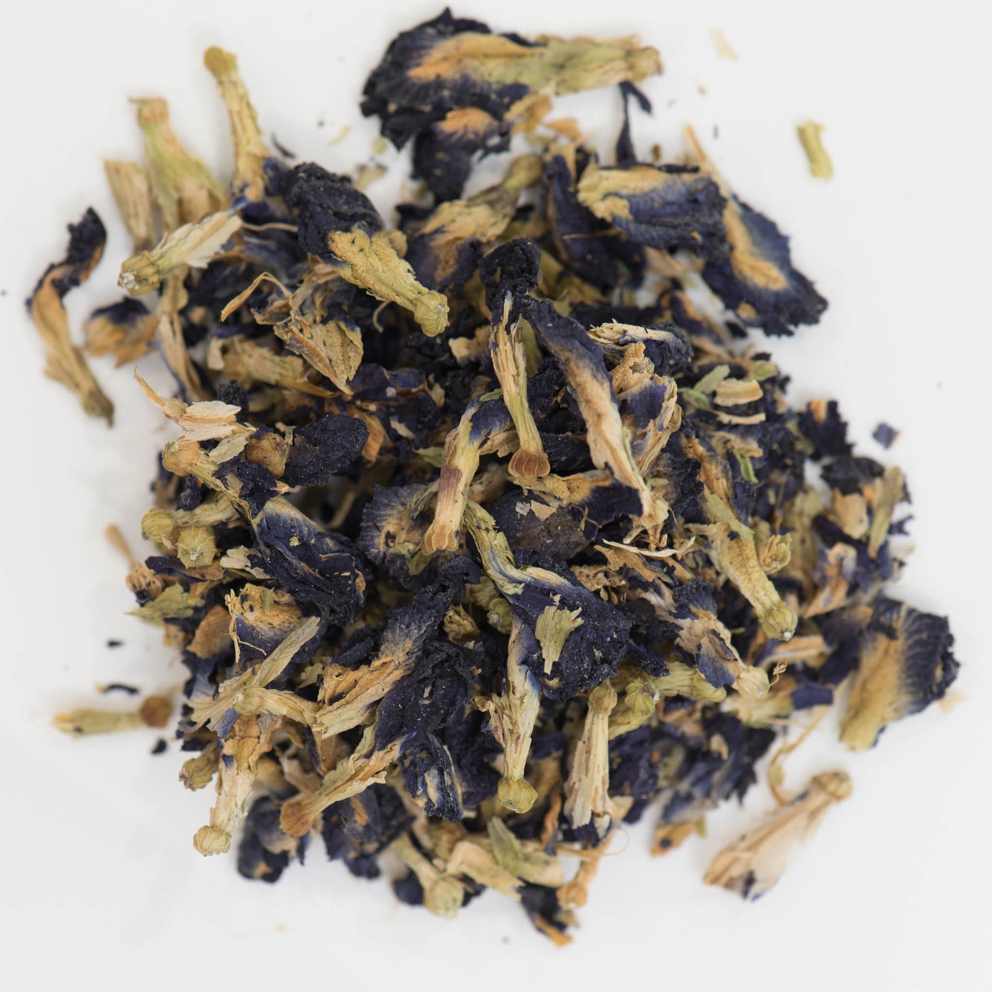Naturally coloured a beautiful Blue, it will turn Purple and Pink if fresh lemon is added to change the PH. It has a neutral flavour & mild aroma that blends well with other ingredients. Naturally High in Anti-oxidants. Clitoria ternatea L. or “Dok Ancan” is used in traditional Thai herbal medicine for good health & improved memory.