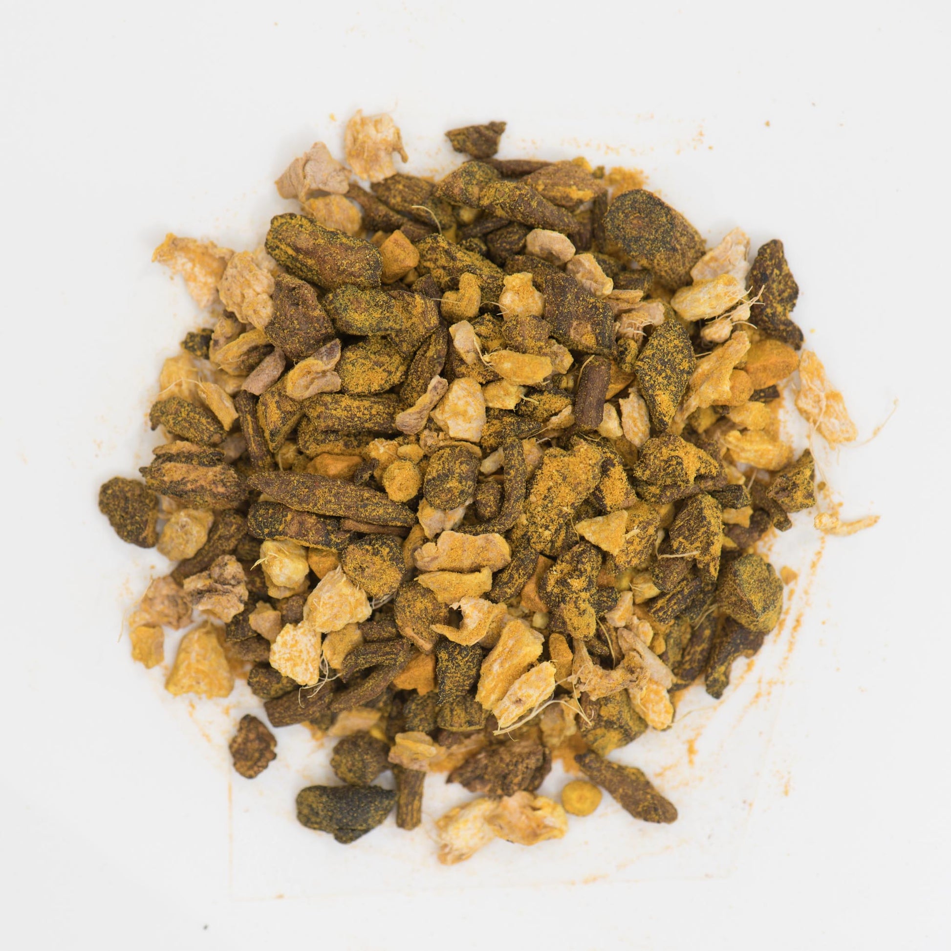This is the dry mix I make up to create my Turmeric and Roasted Dandelion honey chai, but without the honey added. Naturally caffeine free and a natural aid to balancing digestive system.